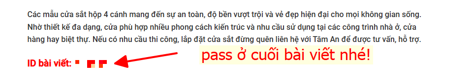 - Bước 3: Kéo xuống dưới cùng trang đó sẽ thấy Pass