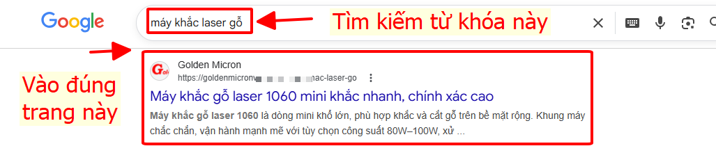 - Bước 2: Tìm từ trên xuống dưới sẽ thấy trang https://goldenmicronvn.com/******-khac-laser-go/ thì bấm vào đó